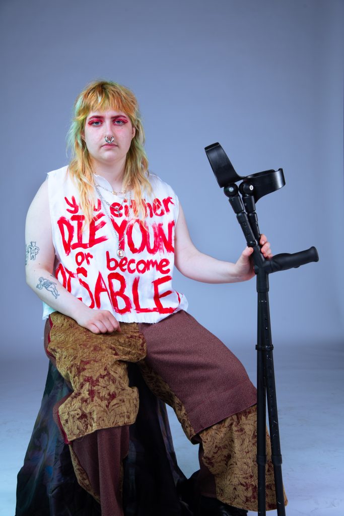 • Garments sourced from thrift stores and rag houses and upcycled to include various adaptive features to aid different disabilities, one of a kind garments sold first come first serve. Prices range $33.50-$220.00.
